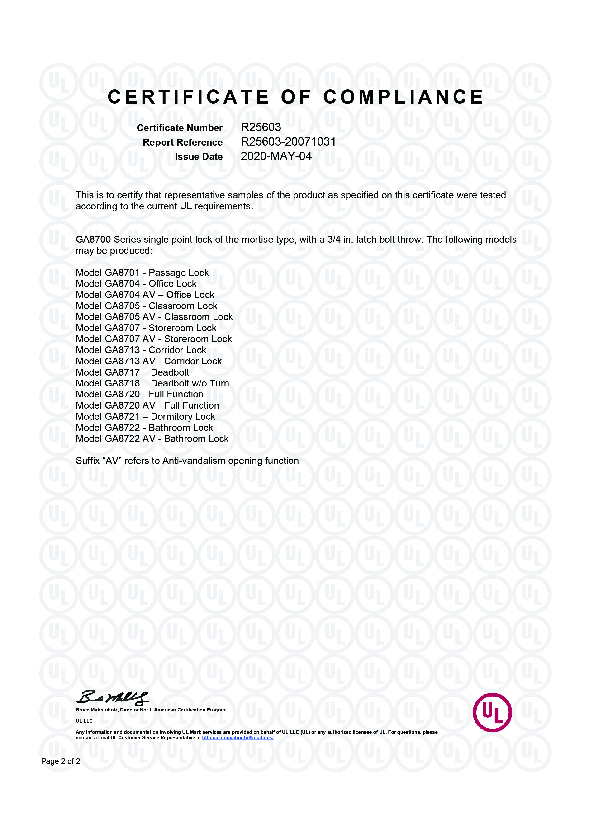 8700系列1級(jí)美標(biāo)插芯鎖
